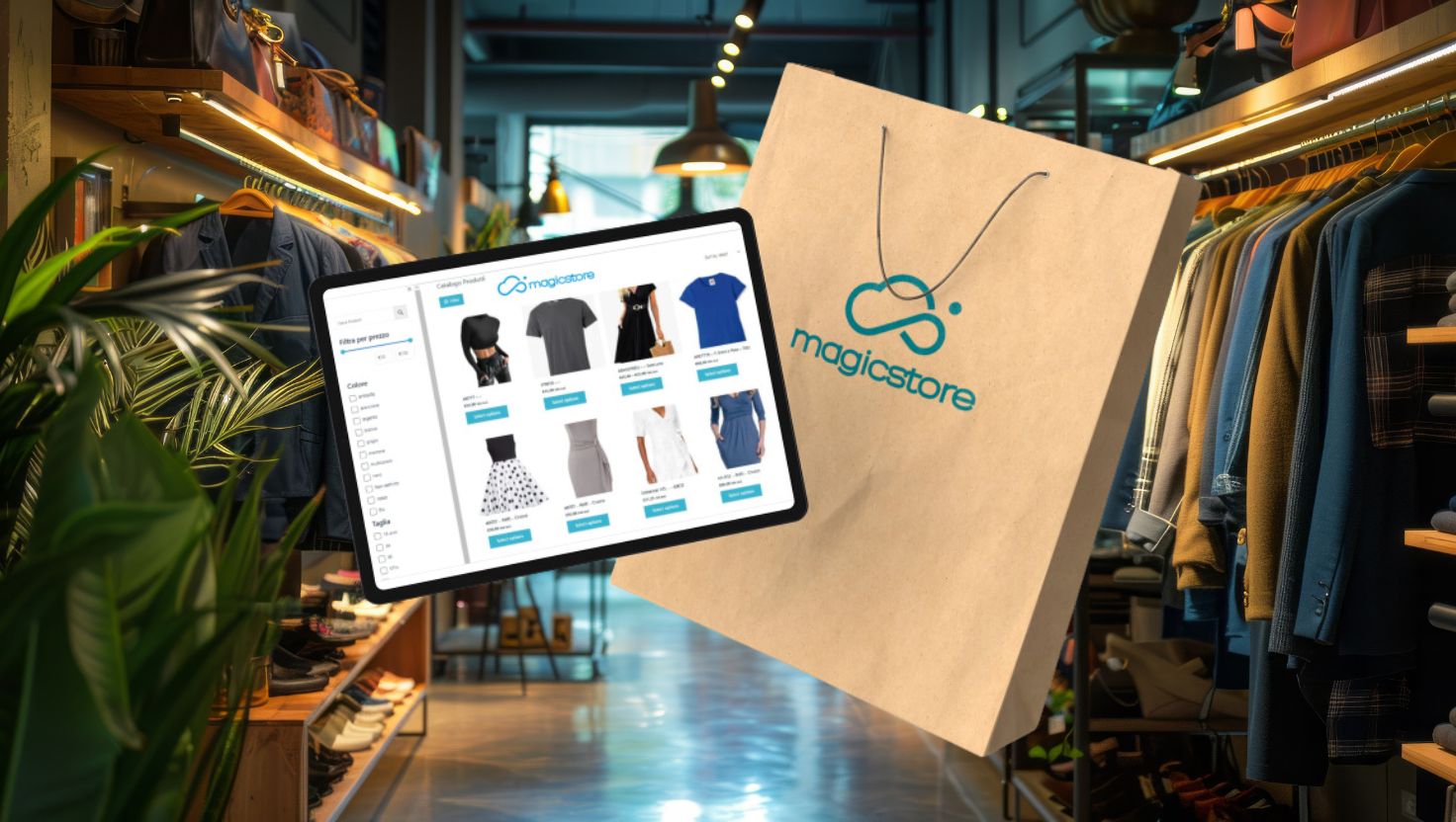 Il catalogo magicstore è un sistema che ti consente di trasformare il tuo negozio fisico in un negozio online e vendere direttamente sul web in modo semplice e veloce.